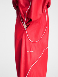 Nike NRG x JACQUEMUS Striped Tech Tapered Sweatpants. These Nike sweatpants are part of the recent collaboration with French designer Simon Porte Jacquemus. Clean, sleek and standard, these pants are made from water-repellent and wind-resistant nylon tech fabric to stay dry, decorated with the two brands' logos on the side and have tapered legs, crossed with fine white stripes that take up the iconic lines while adding a trendy touch. An internal drawstring will allow you to adjust it to your liking, while its mesh lining will let your skin breathe. • STYLE: FV5701-642 • AVAILABLE IN DIFFERENT SIZES [ XXS - XXL ] • Snap and zip front closure with center Swoosh • Elastic waistband at back • Hip with built-in elastics • Body: 100% nylon. Lining: 100% polyester. • Machine washable • COLORWAY: University Red / White • CONDITION: Brand New w. tag • RETAIL: €209,99EUR Shipped worldwide via UPS within 3-5 days after payment cleared. #nike #nikexjacquemus #sportswear #redaesthetics #simonportejacquemus #unisex #jogger