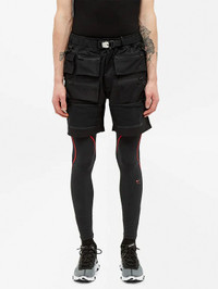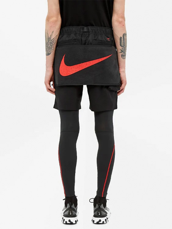 1017 ALYX 9SM designer Matthew M Williams, Series 003, is informed by the natural human form. Teaming up with Nike, this capsule collection was inspired to create performance-focused garments, the collection is built to thrive outside – both in and out of the city. A hybrid style that’s perfect for working out or hiking, this short and tight combo is presented in the capsule’s key black and red and has more pockets than you’ll ever need. Completing the utilitarian look, there’s a detachable boucle panel featuring printed swoosh in red at front and lanyard clasp fastenings completing the detachable towel at the back to keep you free of sweat wherever you go. • STYLE: CK1543-010 • SIZE: S / XL • 78% Polyester • 22% Elastane • Detachable Towel • 2 Side Pockets • 8 Front Pockets • Printed Branding • Red and tonal exposed stitching throughout. • Adjustable cinch belt with patented Fidlock® V-Buckle fastener. • Mid-rise • Zip-fly • RETAIL: $270 USD • WORLDWIDE SHIPPING