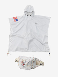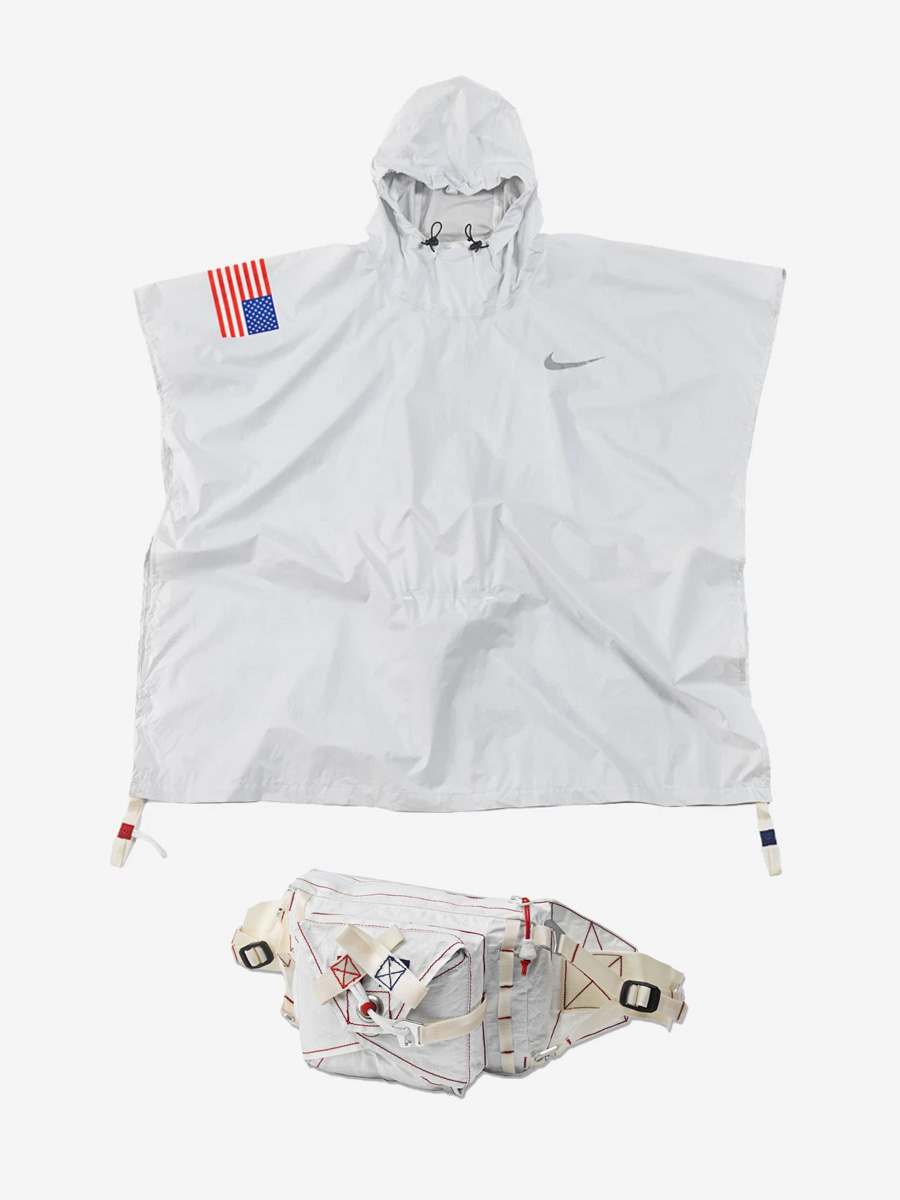 Nike and long-term collaborator Tom Sachs are back at it again, coming together under the NIKECRAFT name to create the Transitions collection and promote “transparency of materials and of construction”. As the standout piece of the capsule, this "Exploding Poncho" is about as spectacular as it gets. So much so, it wouldn’t look out of place on any lunar voyage. Quickly deployed from a waist pack and secured down each side with simple press studs, it’s made from durable, waterproof Dyneema® fabric and has text scrawled across the hem in true prototypical fashion. To complete the look, and highlight Sachs’ fascination with space, it’s got an American flag on one sleeve, just like the NASA space suits. • Style Code: BV3944-100 • Detail: ・Press Stud Closure ・Printed Branding ・Dyneema®️ Fabric ・Waterproof ・Packable ・Drawstring Hood • Retail: $499 USD • Shipped worldwide via UPS within 1-5 days after payment cleared.