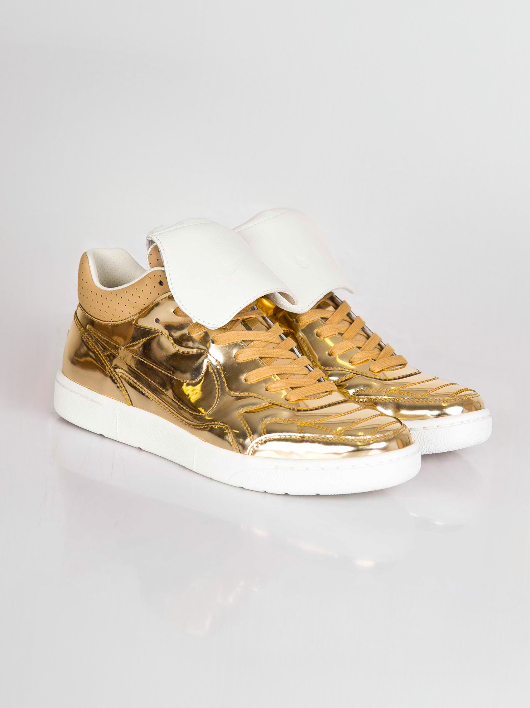 Released on June 26, 2014, the Nike NSW Tiempo 94 Mid SP 'Liquid Gold' brings back a Nike classic in a bling-worthy look. The soccer-inspired mid-top features a removable fold-over tongue flap that creates an intriguing contrast with the metallic gold coating covering its leather upper. The inset collar and lower tongue are perforated for breathability, and the rubber outsole with herringbone treads delivers grippy traction. • SKU: 645330-770 • Size: US7 • Colorway: Metallic Gold-Sail • Retail price: 160 $US • RELEASE DATE: 26/06/2014 Ready-to-ship worldwide via UPS within 24 hours after payment cleared.