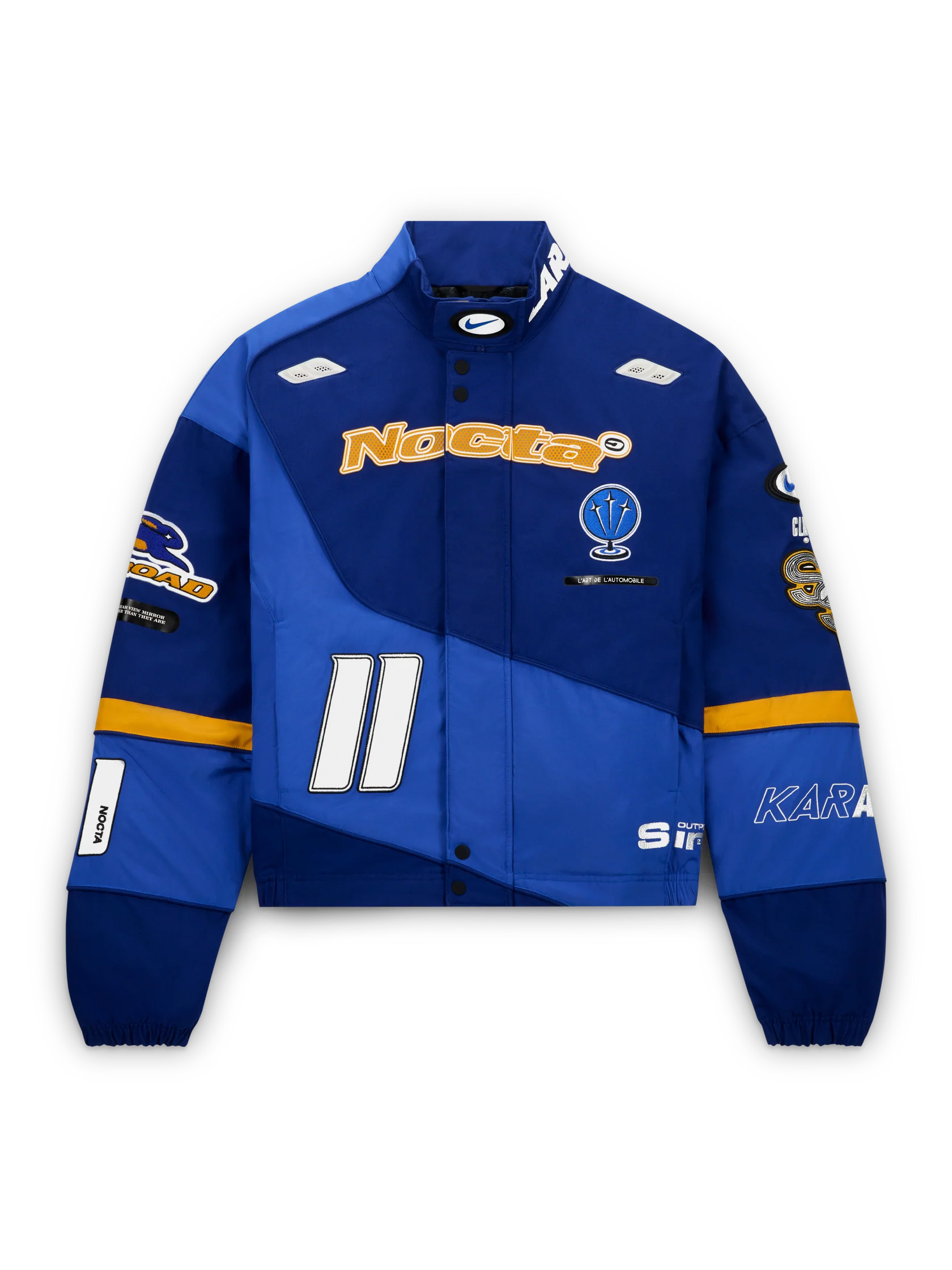 Nike x Drake NOCTA x L'ART DE L'AUTOMOBILE Unisex Racing Jacket. NOCTA meets the racing world to give us this remarkable jacket made to start in pole position. Durable outer materials combined to create a look largely influenced by motor racing jackets. The mix of embroidered, silicone and chenille designs pay homage to racing culture. A collaborative collection combining the look of NOCTA with the energy and aesthetics of the world of motor racing. . Body: 100% cotton. . Panels: 100% nylon. . Lining: 100% polyester. . Filling: 100% polyester • Style: FD2194-455 • Sizes available: XS / S / L / M / XL / 2XL • Condition: BRAND NEW with tags. • Colorway: DEEP ROYAL BLUE / RACER BLUE / PHANTOM • Loose fit on the body. • Quilted lining for comfort, warmth and style. • Vents at the front and back of the shoulders for good breathability. • Exterior zip pockets and interior pocket to store your valuables safely. • NOCTA zips in the center and on the pockets • Worldwide Shipping ✅