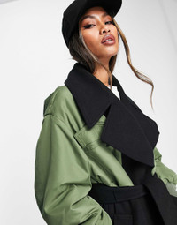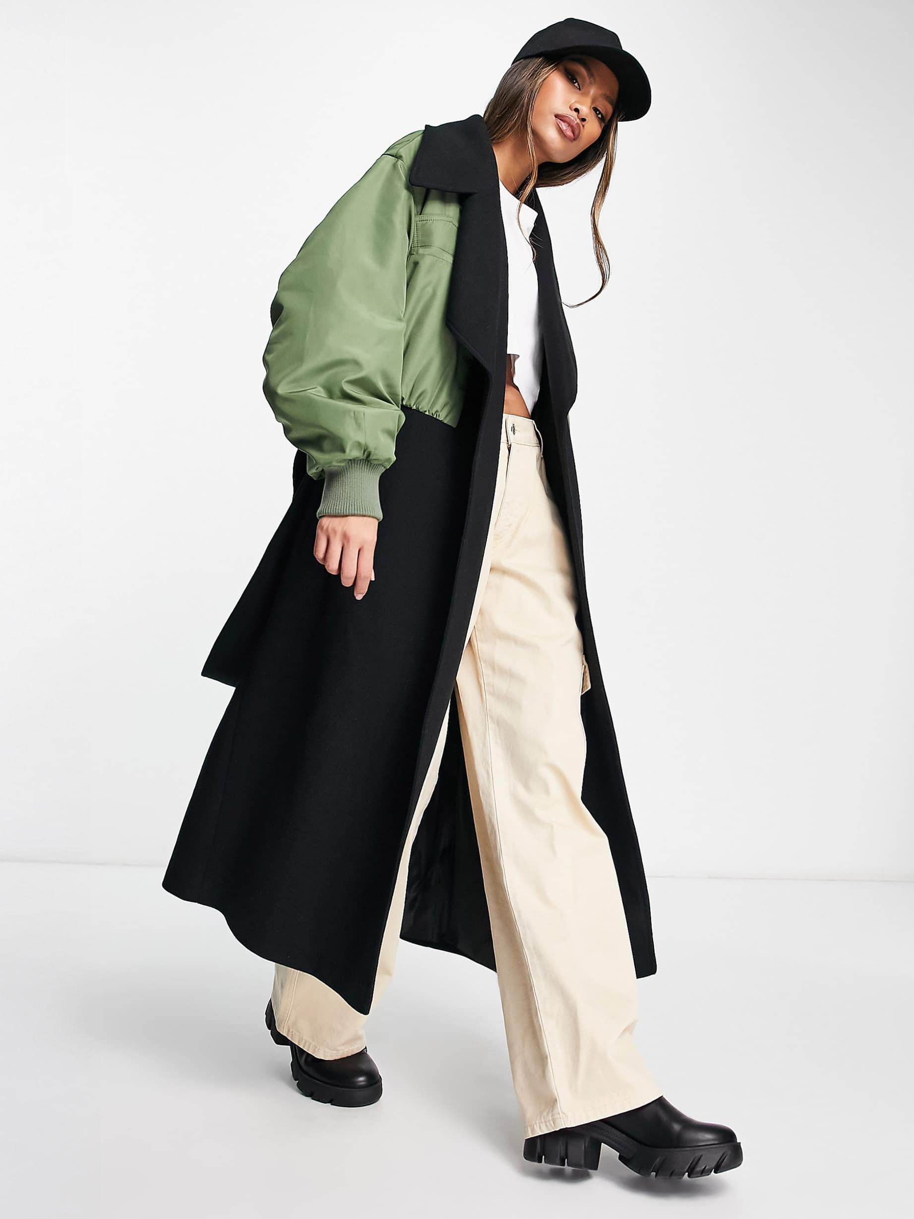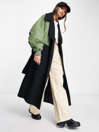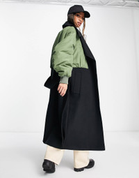 ASOS DESIGN Hybrid Bomber Sleeve Formal Coat in Black and Khaki