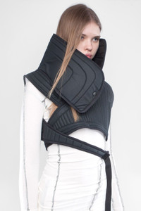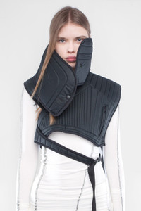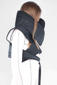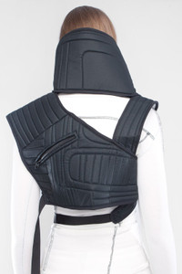 Rare Limited Edition DEMOBAZA 'Neck Pad Sidhi' neoprene denim padded high neck asymmetrical vest designed by Demo+Tono. • Futuristic / Postapocalyptic look • Adjusted by buckles • Unisex universal size. • Retail Price: $200 USD (SOLDOUT) Shipped worldwide with premium carriers (DHL Express, FedEx, UPS) within 24 hours after payment cleared. #demobaza #techwearaccessories #avantgarde #postapocalyptic #burningman #steampunk #neckpad #futurefashion #techwear #deibido #limitededition #soldout