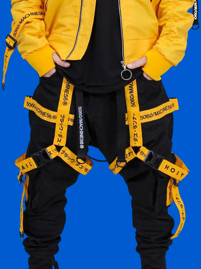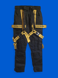'B.L.P.X.56-V.02/YLW' refers to the limited edition Streetwear Collab between the two urban streetwear giants from Indonesia: HOLYGRAIL & MACHINE56. Limited edition black heavy cargo pants with yellow straps featuring Machine56 signature typography. • 10 Compartments. • Removable buckle and webbings. • Sharp cut plastisol prints • Premium canvas. • Sizes available: M / L / XL (doesn't fit TTS, therefore it is recommended to size up according to your usual size) • Condition: Brand new - - - - Measurements - - - - • Waist: 33cm / Thigh: 25.5cm / Length: 101cm Shipped worldwide via UPS within 7-10 days after payment cleared. Import duties, taxes, and charges are included in the item price. #kurowear #techwear #avantgarde #cyberpunk #holygrail #machine56 #cosplay #cargopants #gorpcore #tactical #rare #deadstock #blackandyellowaesthetics #m56 #deibido