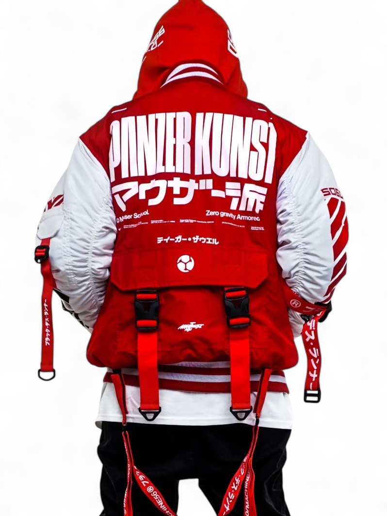 Varsity variant Mauser School Bomber jacket designed by Rajaya Yogaswara aka. MAC/M56. Armored Art , zero gravity combat specialist. [ Product details ] - G1 (RD) Version. - Detachable webbing on the back. - Heavy duty and rugged material. - Packed with waterproof messenger bag packing. - Made in Indonesia • Size: MEDIUM • Condition: Brand new with tag Shipped worldwide via premium carriers (DHL Express, FedEx, UPS) within 7~10 days after payment cleared. Import duties, taxes, and charges are not included in the item price. #machine56 #m56 #kurowear #techwear #reversibletechwear #varsityjacket #avantgarde #futurefashion #redaesthetics #deibido #madeinindonesia #invectorwetrust