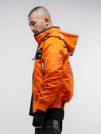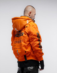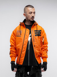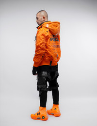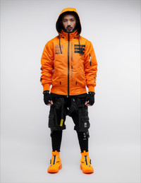 Machine56 x Equilibrium USG B/TYPE-EQUNIT_01R released on 21/10/24. Soldout everywhere. No restock expected. · Upgraded B/TYPE bomber EQ56 Version · Comes with detachable hood x2 · Heavy duty and rugged material · 5 pockets · Model is 165cm tall, wearing size M · Made in Indonesia Size: 3XL Supplier color: Orange Condition: Close to unused MSRP: 200,00 $US Shipped worldwide with premium carriers (DHL Express, FedEx, UPS) within 3-5 business days after payment cleared. *Instruction for International Buyers: Import Duties/VAT/Customs fees, are not included in the item price. Please check on your own countries policies for expected costs involved. #五六 #machine56 #equilibrium #equnit #techwear #avantgarde #bomberjacket #futuristicfashion #orangeaesthetics #urbanstreetwear #madeinindonesia #invectorwetrust