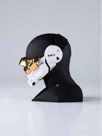 Final and last variant of the demon plate series, a limited art piece half mask including 2 face plate parts, magnet locks, soft liner cuts with laser pressed liner combined with rugged head strapping. All hand made and hand crafted by Rajaya Yogaswara (YOGA / MAC / M56) Demon plates prototype F-G1 [white gold], modified from previous original Demon plates M56/DF-G3. No restock expected. All mask arts will be forever not be reproduced once it is sold out. Exclusively available on REVERSIBLE. *The utility model discloses an NCVM (Non Conductive Vacuum Metalization) multi-coating electroplating imitated metal shell. · HF_BUST is not included* · 1 Authentic M56/DF-G3[BK] · 1 Safety eva container box with buckle strap. CNC · 1 Acrylic magnetic framed, Machine56 Signed · 1 Certificate of authenticity NCVM chrome card (owner's exclusive) Ready-to-ship worldwide via premium carriers (DHL Express, FedEx, UPS) within 24 hours after payment cleared. *Instruction for International Buyers: Estimated Delivery: About 5~10 days with Tracking Number. Import Duties/VAT/Customs fees, are not included in the item price. So please check on your own countries policies for expected costs involved. #五六 #m56 #m5060 #machine56 #wearableart #鬼 #おに #onimask #goldaesthetics #collector #art #accessories #limitededition #deibido #cyberpunk #cybermask