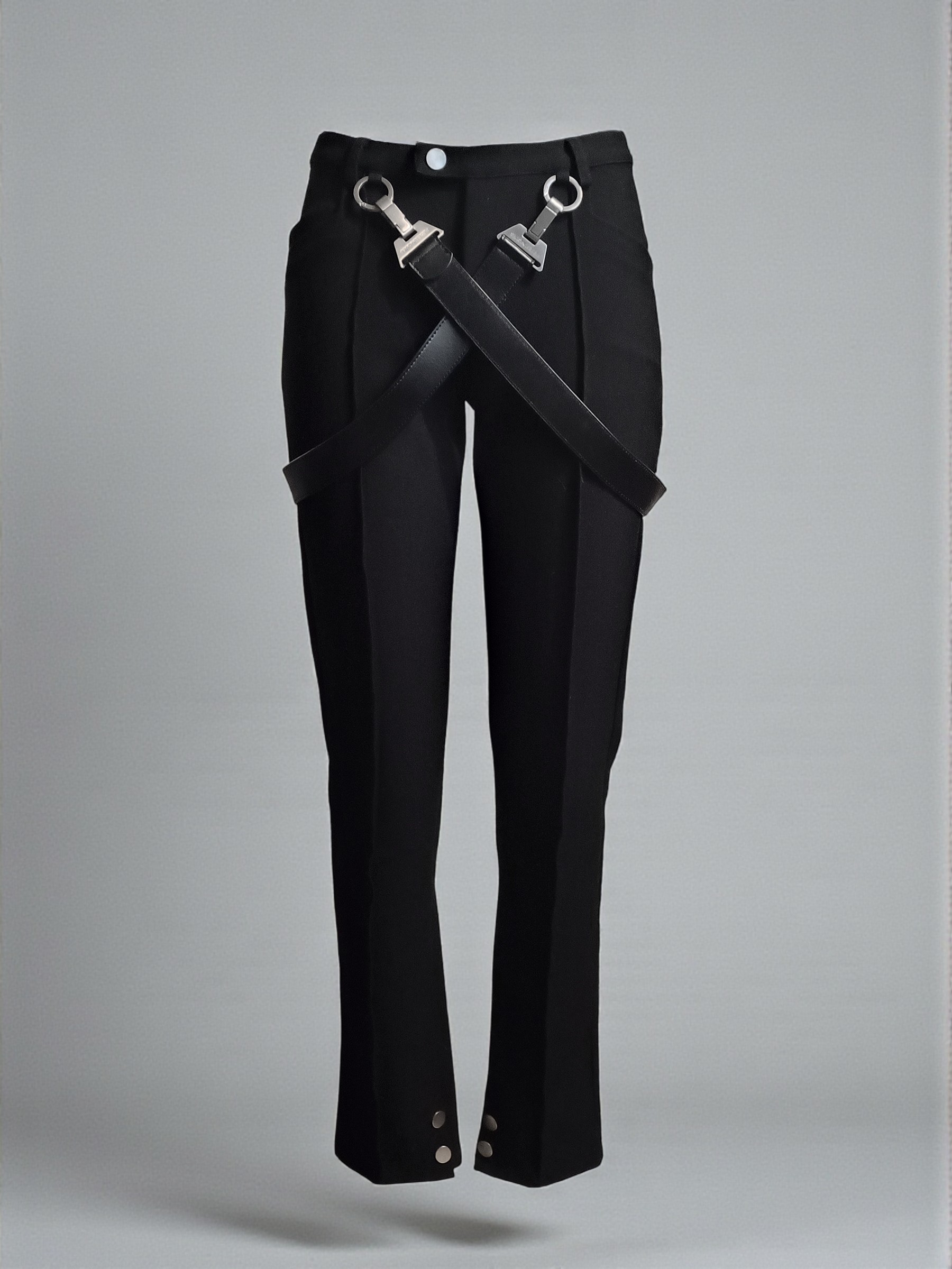 Iconic Pièces Uniques Black Bondage Unisex Trousers from the Autumn/Winter 2019 Collection 'MOON & SUN' by self-taught emerging French designer Edmond Luu (@ eddluu). «Moon & Sun» is an ode to the chief desire of Pièces Uniques to turn clothing into a second skin; an armor in which to brace the everyday reality. Unifying the structure of the garment fom pyjamas to military uniform, designer Edmond Luu has made it a point of honor to infuse each of his creations with an identity. «Moon & Sun» offers a multitude of options for the variations of daily life, with inspirations from Japanese animé alongside cinema and folklore from around the world. This elegant pant features two removable intertwined buckle leather straps with ©PIÈCESUNIQUES signature logo engraved, two buttons closure on the ankle, and two front pockets. Soldout everywhere. No restock expected. · Unisex · Slim fit · Size: S (34 - 36) · Detachable leather straps · Made in Paris • Collection: AW19 • Composition: 95% Polyester, 5% Spandex • Colorway: Black • Condition: Close to unused WWW.PIECESUNIQUES.FR Ready to ship worldwide via premium carriers (DHL Express, FedEx, UPS) within 24 hours after payment cleared. #piecesuniques #edmondluu #madeinparis #darkwear #avantgarde #bondage #unisex #trousers #blackaesthetics #runwaypiece #archive