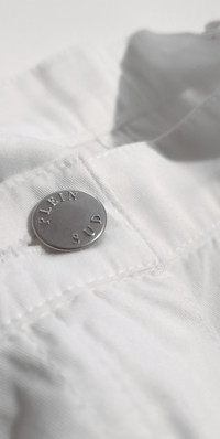 PLEIN SUD, the brainchild of French-Algerian designer Fayçal Amor, emerged as a statement of effortless chic and Parisian sensibility in the 1980s fashion scene. Established in Paris, Plein Sud quickly garnered attention for its bold, yet understated glamour designs, reflecting Amor's unique fusion of French sophistication with Mediterranean flair. With an emphasis on luxurious fabrics, feminine silhouettes, fluid lines and impeccable tailoring, the sunny brand epitomized a timeless elegance that transcended fleeting trends. This archive bondage pants is from PLEIN SUD Women SS'04 Collection. · White wool trousers · Low rise, Oversize Fit · Multi-pockets · Dual zipper on the rear calves · Cinch belts behind knees · Genderfluid • Size: M/L • Condition: Gently Used • Supplier color: White Ready-to-ship worldwide via UPS within 48 hours after payment cleared. *Instruction for International Buyers: Estimated Delivery: About 5~10 days with Tracking Number. Import duties, taxes, and charges are not included in the item price. These charges are the buyer's responsibility. Please make sure to check out your country's customs office to determine what these additional costs will be prior to bidding or buying. #pleinsud #faycalamor #avantgarde #utilitypants #unisex #genderfluid #neopunk #punk #minimalist #minimalfashion #paris #00s #vintage #whiteaesthetics #bondagepants #techwear #archive #archive #ss2004