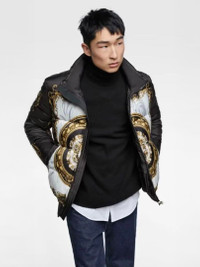 A remarkable all over pattern puffer quilted baroque-style jacket with a Versace-inspired aesthetic. Perfect for the fall/winter season. Model (Sang Woo Kim) is 6'0" wearing size M. - Oversize loose - 2 front pockets - 1 internal chest pocket - Padded - Comfy - Waterproof Size: L Mint condition. Without tag. MSRP: €139,00 EUR Ready-to-ship worldwide via premium carriers (DHL Express, FedEx, UPS) within 24 hours after payment cleared. #zara #zaraman #outerwear #pufferjacket #ulzzang #menswear #fallwinter #baroque