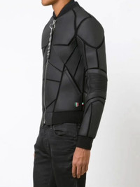 A remarkable and futuristic 'batman inspired' geometrical cutout jacket with symmetrical patterns and zipper closure. Two external pockets and one internal pocket. This rare avant-garde item was showcased during Philipp Plein Fall-Winter 2016 Fashion Show. • SIZE: M • SHELL COMPOSITION: 100% LAMB LEATHER • BODY LINING: 94% VISCOSE 6% ELASTANE • CONDITION: BRAND NEW without tag • COLLECTION: FALL / WINTER 2016 Collector's archive piece made in Italy, synonymous with fine quality, design creativity and excellence. All orders ship worldwide through premium carriers (DHL Express, FedEx, UPS) within 48 hours after payment cleared. *Instruction for International Buyers: Estimated Delivery: About 5~10 days with Tracking Number. Import duties, taxes, and charges are included in the item price. #philippplein #avantgarde #futurefashion #batman #rare #madeinitaly #luxury #runway #highfashion #fw16