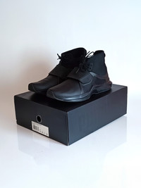 Another addition to the collaboration between Rihanna and Puma, the Rihanna x Fenty Trainer Hi 'Black' features a slip-on design with a neoprene collar and a rubberized, branded TPU strap across the premium leather upper. Dressed in a very monochromatic aesthetic, the high-top also sports an Ignite outsole, a lightweight foam midsole and mesh panels for breathability. Rihanna’s signature Puma branding is dispersed throughout. • STYLE: 190398-01 • SIZES AVAILABLE: 8 / 8.5 / 10.5 / 11 US Women's • COLORWAY: BLACK • CONDITION: NEW w/ OG Box + FENTY BAG • RETAIL: $190 • RELEASE DATE: 23/06/2017 If you have any questions, please feel free to contact me @deibido on IG. Your order will be shipped in 1-3 days after payment cleared. 💬🚚💨✈️📦🌏Shipping worldwide with UPS.
