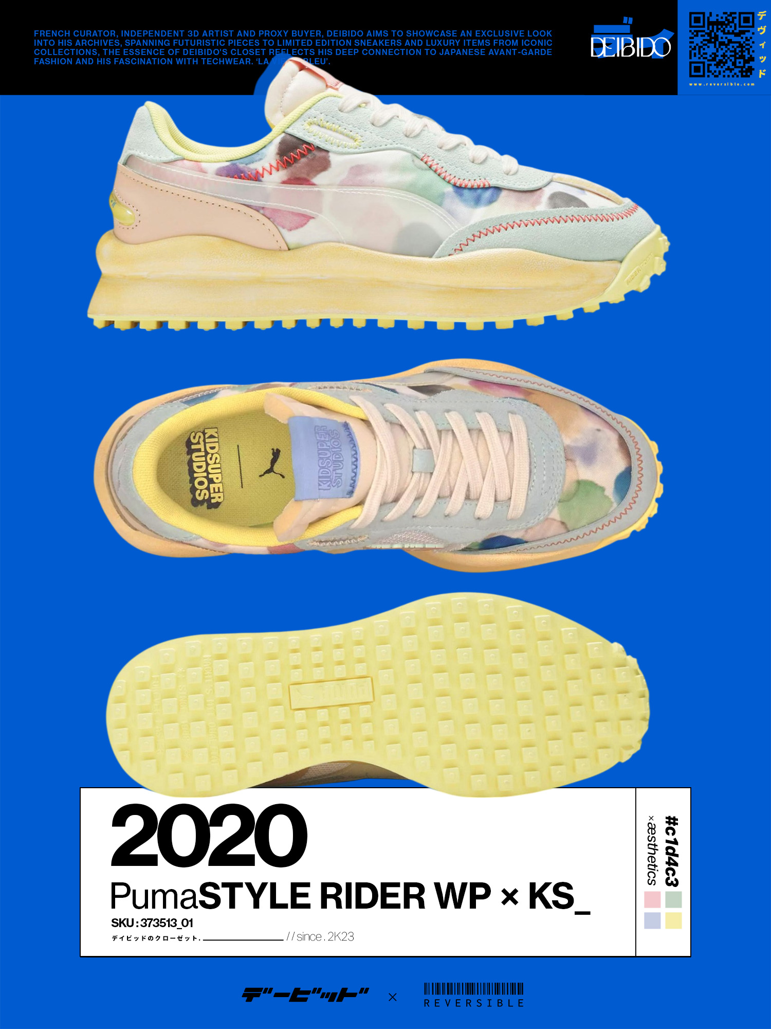 KidSuper Studios x Puma Style Rider 'Watercolor Print' (2020). Made in collaboration with Brooklyn-based artist Colm Dillane’s menswear label, the KidSuper Studio x PUMA Style Rider ‘Watercolor Print’ delivers a playful and imaginative collection of apparel and footwear. Watercolor-inspired graphics enliven the textile upper, fortified with suede overlays in a powder blue finish. KidSuper branding adorns a gel insert in the heel, mesh paneling on the medial quarter panel and a semi-translucent TPU Formstrip on the lateral side. A painted IMEVA midsole is supported by a yellow studded Federbein outsole. Dillane, an ex-professional football player, is also a multi-faceted artist with an affinity for vibrant prints and clever design. His collection with the brand reflects just that. • SKU: 373513-01 • Size: US 8 / EUR 42 • Colorway: Puma White-Dusty Aqua • Condition: Close to unused with OG Box • Retail price: $130 • Release Date: 09/17/2020 Shipped worldwide. All international orders are dispatched via UPS within 48 hours after payment cleared. Any duties to be paid will be the customers responsibility. #puma #kidsuper #collabs #colorful #colmdillane #watercolor #multicoloraesthetics #deibido #pastelaesthetics
