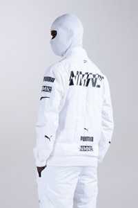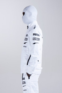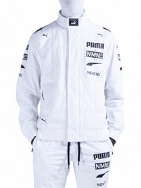 NMN®_PUMA FZ RACING SILHOUETTE JACKET -Velcro fastening neck closure -Fastening zipper on front -PUMA x NEMEN logo puller on front -FIA Racing inspired labels on internal flap -Rubberized zipper on side pockets with autolock zip cursor -Racing inspired rubberized graphic print -Ribbed cuffs and waistband -Racing inspired ribs on arm with embroidered cat logo on sleeve -Lifestyle inspired form strip • Sizes available: M / L • Colorway: # 02 WHITE • Designed in Italy, Engineered in Germany • Retail price: €200,00 EUR Shipped worldwide via UPS within 3-5 days after payment cleared. #nemen #nmn #pumanemen #racing #sportswear