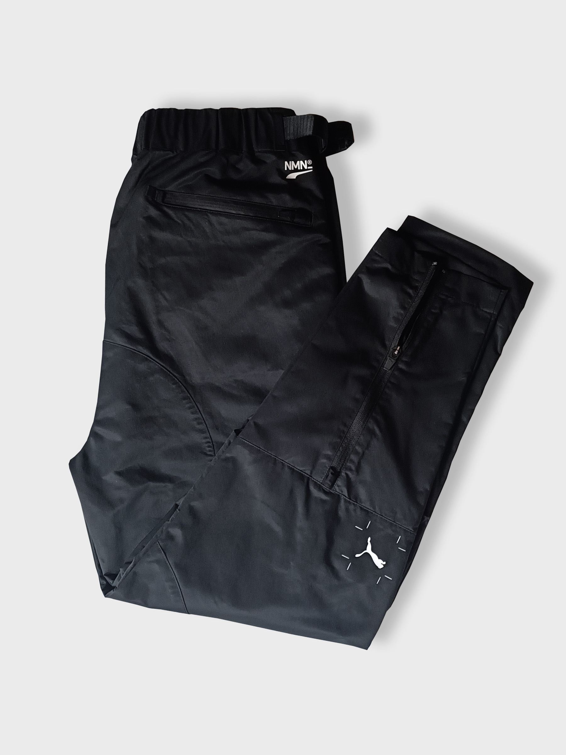 NMN®_PUMA PILOT PANTS # 01 BLACK Driven by details, these PUMA x Nemen pants combine elements of motorcycle racing with military gear. Made from technical nylon for a functional feel, this black pair is fitted with a fully adjustable waistband and utilitarian-inspired zippered cuffs for ease of mobility. To finish, dual branding to the front and back adds a hit of team spirit. -100% Polyester -Loose fit pant -Elastic waistband -Dual adjustable metal buckles -Side pocket with rubberized zipper and autolock cursor -Tape pocket detail to facilitate zipper closure -Rubberized adjustable width zipper on back caff -Ergofit knee construction -Water repellent • Size: M • Colorway: # 01 BLACK • Designed in Italy, Engineered in Germany • RRP: €225,00 EUR Ready-to-ship worldwide via UPS within 24 hours after payment cleared. #puma #nemen #nemenitalia #racing #trousers #collabs #darkwear #techwear #deibido #waterrepellent #blackaesthetics