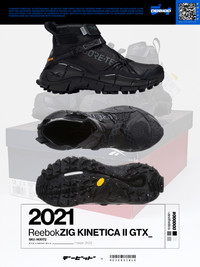 Introduced in early 2021, Reebok has updated its Zig Kinetica II running shoe as an all-weather, all-terrain high-top shoe for fall and winter. While the midsole is carried over from the Zig II, an all-new upper uses Gore-Tex's Infinium membrane to lock out moisture and Thermium insulation to stay warm. A rolled toe and Vibram Ecostep outsole provide excellent traction in the elements, while a system consisting of an elastic band, Velcro flap and buckle keeps the shoe snug. Building on the Zig Kinetica II base, Reebok's Floatride Fuel Energy and Zig Energy Shell systems are also present on the Zig Kinetica II Edge. Chalk, Pure Gray and All Black colorways are offered, with the shoe available to purchase now via REVERSIBLE in different sizes. • SKU H05172 • COLORWAY: CORE BLACK/PURE GREY • CONDITION: BRAND NEW w. OG Box • RELEASE DATE: 27/08/2021 Shipped worldwide via UPS within 48 hours after payment cleared. Import duties, taxes, and charges are not included in the item price. #reebok #goretex #zigkinetica #ttechwear #echwearsneakers #avantgarde #japan #goretex #deadstock #darkwear #blackaesthetics