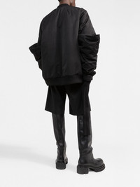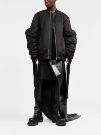 This recycled cotton and organic cotton blend fabric bomber jacket with down padding is hip length, it has a centre front zipper, with top snap two side slit vertical pockets with internal snaps, a ribbed collar and level shoulder seams. It features ultra long gauntlet sleeves with a knitted insert and a wide puffed upper and lower sleeve jutting out above the elbow, encasing a slim internal sleeve. It has an extra long ribbed cuff, which can be worn hanging, with two finger holes, or gathered up at the wirst to expose the hand. It is fully lined with internal zippered pockets. Zip fastening. Premium down and feather insulation and a knitted collar and hem. Comfortable fit. - STYLE ID: RR02B2712 MU - MSRP: ¥ 339,000 + tax - Condition: Brand new with tags - Size: IT 48 - Supplier Color: Black - Made in Italy Shipped worldwide via premium carriers (DHL Express, FedEx, UPS) within 48 hours after payment cleared. *Instruction for International Buyers: Estimated Delivery: About 5~10 days with Tracking Number. Import duties, taxes, and charges are included in the item price. #avantgarde #rickowens #darkwear #blackaesthetics #oversize #bomberjacket #fw22