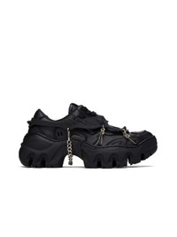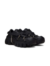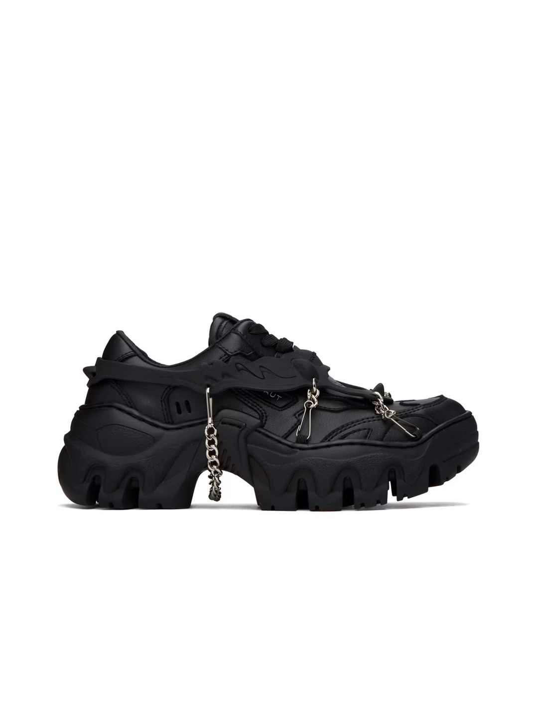 Handcrafted low-top paneled grained faux-leather sneakers in black. Detachable rubberized overlay with curb-chain accents. · Lace-up closure · Logo embossed at padded tongue and heel counter · Padded collar · Rubberized logo appliqué at outer side · Faux-leather lining · Treaded TPU platform rubber sole · Platform: H1.75 in · Upper: synthetic · Sole: thermoplastic polyurethane · Made in Portugal. • Size: IT 37 • Supplier color: Black beyond leather • Condition: Brand new with OG Box • MSRP: $470 USD Shipped worldwide via premium carriers (DHL Express, FedEx, UPS) within 48 hours after payment cleared. *Instruction for International Buyers: Estimated Delivery is about 5~10 days with Tracking Number. Standard shipping typically takes 5 business days for delivery after dispatch. Delivery times may vary based on the destination. Import duties, taxes, and charges are not included in the item price. #rombaut #matsrombaut #techwear #darkwear #avantgarde #luxury #blackaesthetics #ecoresponsible #veganleather #deibido