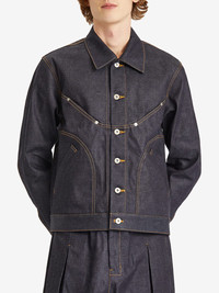 Guided by the principles of "PURPOSE (目的)、PERSPECTIVE (視点) 、BALANCE (均衡)" sage NATION offers thoughtfully designed pieces that redefine modern fashion. The Jiji non-stretch blue denim jacket is a beautiful blend of Western influence, Japanese tailoring and the brand’s signature aesthetic, making it an instant must-have this season. Designed by Sage Toda-NATION. · Indigo blue · Cotton · Denim · Brand Label on Reverse · Cropped Trucker Style · Curved Panelling · Contrast stitching · Front Button Closure · Multiple Pocket Styling · Rear Cinch Tabs · Rivet detailing · Oversized pointed collar · Long sleeves with buttoned cuffs · Two slit pockets at the chest · Two side welt pockets · Waist tabs · Straight hem · Unlined · Made in Japan • Size: XS • Supplier color: Indigo blue • Composition: 100% Raw Cotton Denim • Condition: Like new without tag • MSRP: $705,00 USD Shipped worldwide via premium carriers (DHL Express, FedEx, UPS) within 48 hours after payment cleared. *Instruction for International Buyers: Delivery times may vary based on the destination. Estimated Delivery is about 7~10 days with Tracking Number. Import duties, taxes, and charges are included in the item price. #sagenation #sagetoda #japanesefashion #london #denim #minimalfashion #streetwear #セイジネーション