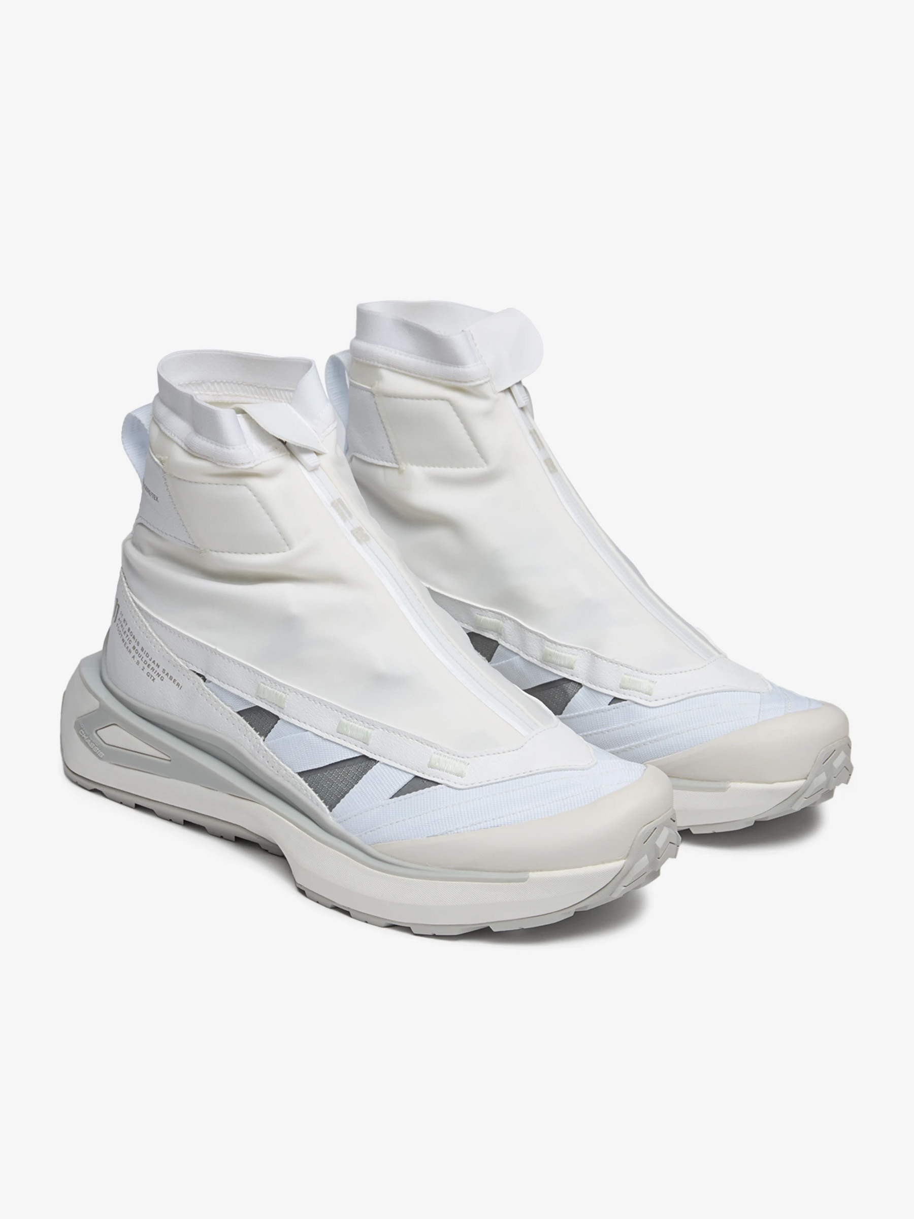 11 By Boris Bidjan Saberi x Salomon 11S Footwear A.B.2 GORE-TEX® 'White Grey'. Inspired by 25 years of bouldering, 11S Footwear A.B.2. Gore-Tex conveys visual and athletic references through its unique mid-cut upper and waterproof Gore-Tex membrane. This instalment in a long-standing partnership embodies the duality between aesthetic exploration and high-performance gear. Part of a full capsule dedicated to bouldering. - Lacing system: Quicklace® - Waterproofness: GORE-TEX® - Lining: Textile - Integrated Gaiter - Outsole: All Terrain Contagrip® - Technology: EnergyCell - Upper: Single layer mesh / Synthetic - Weight: 330 g - Drop: 10 in mm · SKU: L47712100 · SIZE: US 5 / EUR 36 Women's · COLORWAY: White / Gray Violet · CONDITION: Brand New w. OG Box · RETAIL: $380 USD · RELEASE DATE: 10/22/2024 Shipped worldwide with premium carriers (DHL Express, FedEx, UPS) within 3-5 days after payment cleared. *Instruction for International Buyers: Estimated Delivery: About 5~10 days with Tracking Number. Import duties, taxes, and charges are not included in the item price. #salomon #salomonab2 #11bybbs #borisbidjansaberi #minimalaesthetics #whiteaesthetics #whitegrey #techwearshoes #whiteshoes #unisex