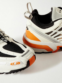 Salomon Off-White ACS Pro Sneakers Low-top SensiFit™ mesh sneakers in off-white. Rubberized trim and printed logo throughout. · Quicklace™ closure · Logo patch at padded tongue · Pull-loops at heel collar · Molded breathable OrthoLite® insole · Mesh lining and medial protective pad at interior · Agile Chassis™ System rubber midsole · Treaded Contagrip® rubber outsole · Logo-engraved silver-tone hardware · Upper: Textile · Made in Viet Nam. • STYLE: L47298800 • COLORWAY: VANILLA ICE / LUNAR ROCK / TOMATO CREAM • RETAIL: $230 USD • RELEASE DATE: 08/09/2023 All orders are shipped via UPS within 1-3 days after payment cleared.