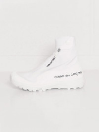 Salomon XA-Alpine 2 'White' x CdG (Limited Edition). Designed as part of the Comme des Garçons Homme × Salomon collab revisiting the iconic XA-ALPINE 2 ADVANCED. These carbon-plated high-top water-repellent protective sneakers are flawlessly matching with the sculptural rubber midsoles showcasing the Contagrip® tech in order to overcome grounds under all conditions. We can also mention the remarkable comfort while wearing these premium shoes composed by high-performance fabric that are incredibly lightweight. · Polyuréthane/Nylon · Sole: 100% Rubber. · Contrasted CdG logo. · Zipper: Elastic collar with snap fastening. • Material: Polyuréthane / Nylon • Sole: 100% Rubber. • Size: US 9 / EUR 42 ⅔ Men's • SKU: L4168200026 • Colorway: WHITE • Condition: BRAND NEW w. OG Box • Retail: $415.00 USD • Release date: 28/10/2021 Shipped worldwide via premium carriers (DHL, FedEx, USPS) within 3-5 days after payment cleared. #salomon #salomonforcdg #commedesgarcons #collabs #xaalpine #trekking #whiteaesthetics #minimalfashion #techwearshoes #techwear