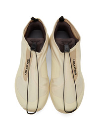 Mid-top mesh sneakers in beige and khaki. Tonal bonded jersey trim and bonded detailing throughout. · Round toe. · Logo printed in black at vamp. · Quicklace® closure with bungee-style fastening in black. · Textile logo patch at tongue. · Padded collar. · Webbing pull-loop in black at heel collar. · Ortholite® Impressions insole. · Tonal 4D Advanced Chassis foam rubber midsole featuring logos printed in white, green, and black at outer side. · Tonal treaded Contagrip® rubber outsole. · Fit runs small. · Upper: textile · Sole: rubber · Gender: unisex • Style ID: L4157860028 • Supplier color: Bleached sand/Safari/Shale • Release date: 2023-07-21 Shipped worldwide via premium carriers (DHL Express, FedEx, UPS) within 48 hours after payment cleared. *Instruction for International Buyers: Estimated Delivery: About 7~10 days with Tracking Number. Import duties, taxes, and charges are not included in the item price. #salomon #xaalpine #beigeaesthetics