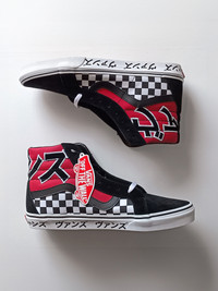 The VANS Sk8-Hi Japanese Type 2XSBSJY. An iconic high-top sneaker with genuine leather inserts and Japanese embroidery. Vans patch on the tongue, Vans patch on the heel, Flat laces, Printed sole, Engraved sole certifying authenticity. Delivered in the official Vans box. [ Composition ] · Upper: Leather and textile · Lining: Textile · Sole: Rubber [ Product details ] • SKU: VN0A2XSBSJY • Size: 12 US • Colorway: BLACK / WHITE-RACING RED • Condition: Brand New w. OG Box • MSRP: $220 - $720 • Release date: 24/08/2018 Ready-to-ship worldwide via premium carriers (DHL Express, FedEx, UPS) within 24 hours after payment cleared. #vans #sk8hi #japan #limitededition #vintage