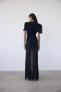 AGUA MAXI DRESS IN BLACK CRINKLE CHIFFON