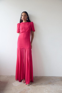 AGUA MAXI DRESS IN FUCHSIA CRINKLE CHIFFON