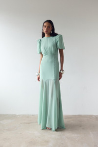 AGUA MAXI DRESS IN SEA GREEN CRINKLE CHIFFON