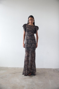 A new and exclusive De La Vali gown, The Bougainvillea Ruffle Maxi Dress has made its name as THE iconic dress for the summer wedding season and beyond. In a striking, fluid bias cut silhouette with elegant fishtail hemline and voluminous ruffle sleeve. This show stopping gown returns in an exclusive feather print, inspired by the brands Ibizan heritage and reminiscent of one of the brands early 'sell-out' and most in demands styles. - Floor length - Bias cut - Ruffle sleeve - Removable slip - Exclusive DLV floral print - 100% polyester georgette Model is 5’10 / 178cm wearing a UK8 / US 4 / EU 36