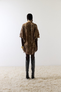 Relaxed fit mini dress Dropped shoulder Double ruffle flounce sleeves High neck with scarf detail tie neck Front neck keyhole Under bust seam Double ruffle flounce hem Removable mini slip dress PRODUCT & FIT Fits true to size Dress Length: 81.5cm (UK8) 100% Viscose Dry Clean Only Designed in London & Ibiza Model is 5’10 / 178cm wearing a UK8 / US 4 / EU 36