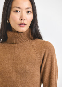 The Bethany Long Sleeve Turtleneck Dress is crafted from extra fine merino wool. Cut with a classic fit, this sleek sweater dress features a turtleneck, raglan sleeves, a ribbed waistband, and an a-line silhouette that falls to the calf. SKU: TCOP3908EFW - Imported