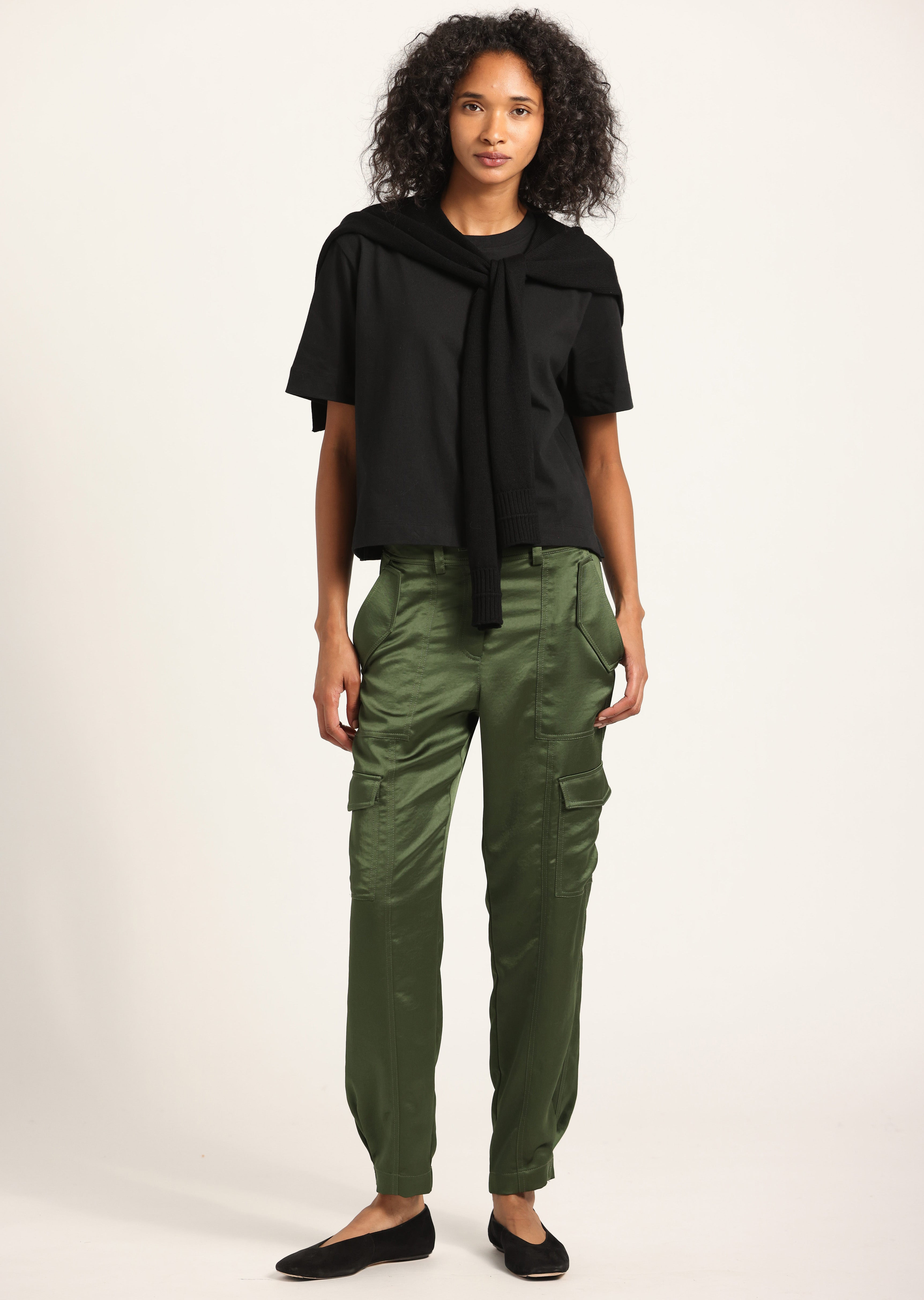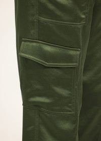 The Elian is a modern take on a Derek Lam 10 Crosby signature silhouette. These utility trousers are meticulously tailored with a cropped, slim and tapered leg, and are intended to sit mid-rise. With patch pockets on the back, utility pockets on the front, and flap pockets on the leg, the pants lean into a structured, functional aesthetic. Crafted in a light-weight satin twill. Model is one size up from her normal size for a more relaxed fit. SKU: TF51108SPN - 98% Polyester, 2% Spandex - Imported SIZE & FIT Front Rise 11”, Back Rise 16.25" | Inseam 27.5” | Leg Opening Circumference 12”, based on a size 4. Our model is 5’9” and is wearing a size 4. This style runs true to size. FEATURES & DETAILS - Dry clean only