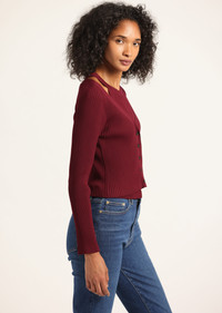 The versatile pre-styled Lonnie Layered Cardigan puts an outfit together for you. Constructed from a soft ribbed viscose, it offers a form-fitting shape with some stretch. The set is slightly fitted and subtly cropped. Attached at the back and sides, this cardigan and tank combo gives the illusion of layers and can be worn open or closed. Finished with rib trim at the armholes, neckline and placket, and mother of pearl buttons. SKU: TCOP9384YDV