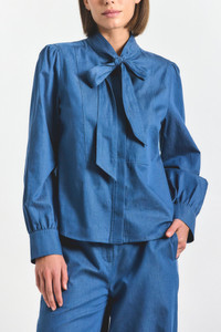 The Majah blouse brings effortless refinement to everyday dressing. Cut in a soft, denim-inspired weave, it balances clean structure with feminine ease. The relaxed silhouette, gathered sleeves, and self-tie neckline create a modern take on a classic staple—versatile enough for work, weekends, and everything in between. SKU: TCOP7447CHB - 100% Cotton - Imported SIZE & FIT Based on a size S. Our model is wearing a size S. This style runs true to size. FEATURES & DETAILS - Dry Clean Only