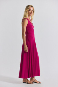 The Misha Maxi Dress will to take you from day to evening, seamlessly blending style with comfort. Seen here in a Raspberry hue, the dress is crafted from a fluid matte jersey. The A-line shape drapes beautifully over the body, falling to the ankles. Elasticated tunnels trace the neckline, arm openings and side seams, with a ruching detail at the center front and sides. SKU: TP535557CRJ - 95% Polyester, 5% Elastine - Imported SIZE & FIT Length from shoulder to hem is 52” based on a size S. Our model is 5’11” and is wearing a size S. This style runs true to size. FEATURES & DETAILS - Dry clean only