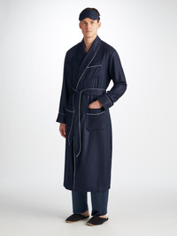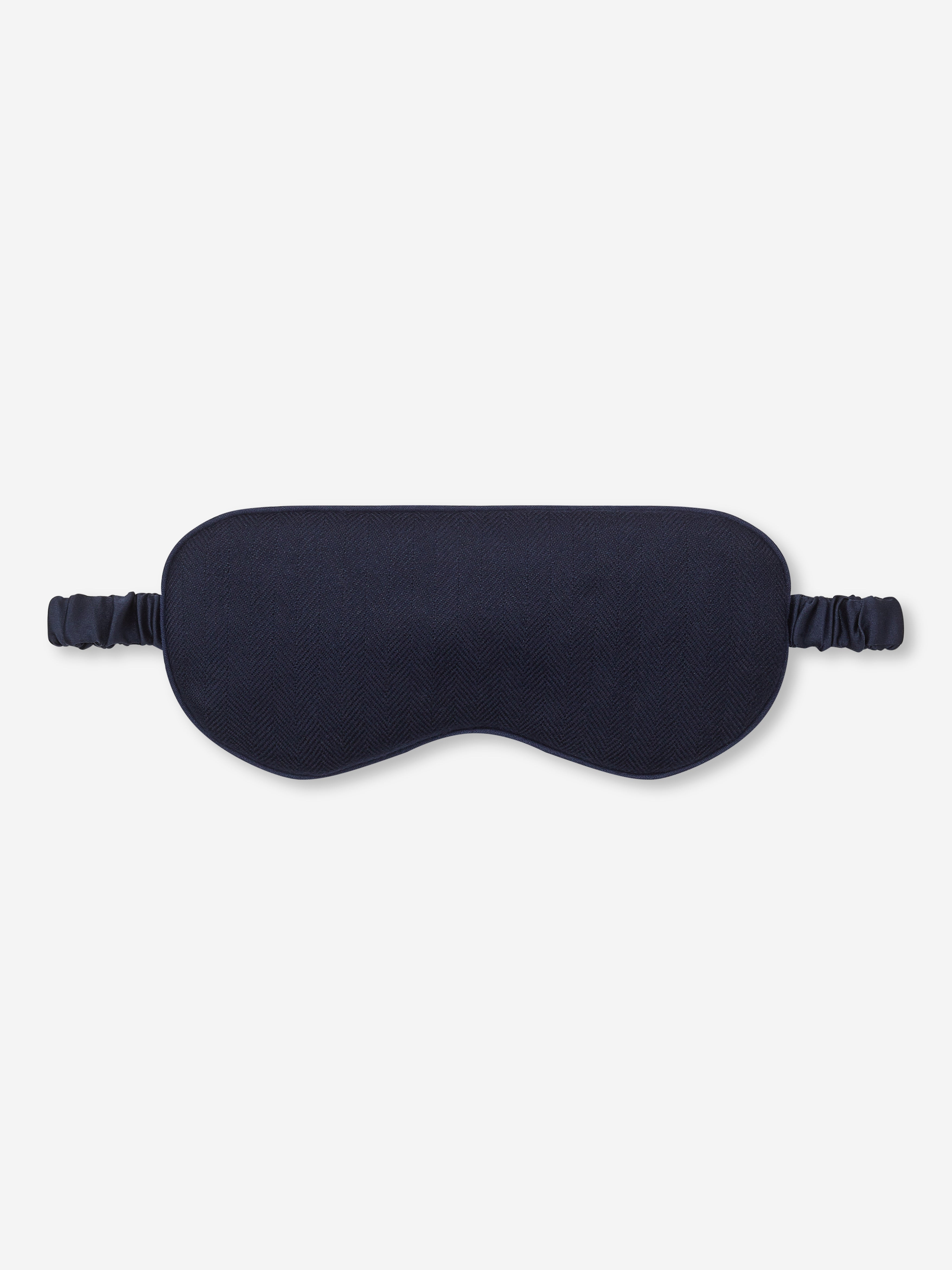 Piped in a complementary navy, the inside is gently padded for a soft and comforting feel, whilst a matching elasticated navy silk strap ensures a secure fit without being constricting on the skin. No more waking up wondering where your mask has disappeared to. Made from 100% woven herringbone cashmere from Loro Piana in this stylish navy colour, the Duke eye mask is extra soft and designed to ensure an uninterrupted night's sleep. The mask is lined on one side with our signature Bailey navy pure silk for delicate and cooling comfort around your eyes. The eye mask comes with a cashmere pouch that is finished with navy silk drawstrings for a final touch of luxe that makes this the perfect gift or just an indulgent treat for yourself. Complete the look with our Duke Navy Cashmere Dressing Gown and keep your cashmere looking its best with our Beechwood Cashmere Comb. PRODUCT DETAILS Material: Pure Cashmere Fabric Weight: Medium Fabric Type: Regular Gender: Men's Colour: Navy Pattern: Stripe Season: 24-W Country of Origin: United Kingdom Composition: 100% Cashmere Fit: Regular Fit Item Number: 0210-DUKE001NAV