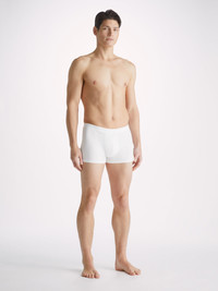 Our Alex boxer briefs in white are cut for a streamlined, classic look with a fitted shape, closed front and a shorter leg. A fabric-covered waistband provides gentle skin contact. Crafted from a lighter weight version of our best-selling Basel fabric, combining a blend of 94% micro modal and 6% elastane for exceptional softness and comfort. Not only is the Alex hipster soft, but thermostatic properties in the micro modal fibres allow them to react to changes in temperature and regulate your body heat. What's more, the fabric is also environmentally friendly, made from European beech tree pulp. The model is 6’0”/ 183cm tall with waist size 32.5”/ 82cm, chest size 40”/ 101.5cm. He wears a size Medium. PRODUCT DETAILS Material: Micro Modal Stretch Fabric Weight: Light Fabric Type: Jersey Gender: Men's Colour: White Pattern: Plain Season: CLA Country of Origin: Albania Composition: 94% Modal 6% Elastane Fit: Regular Fit Item Number: 8567-ALEX001WHI
