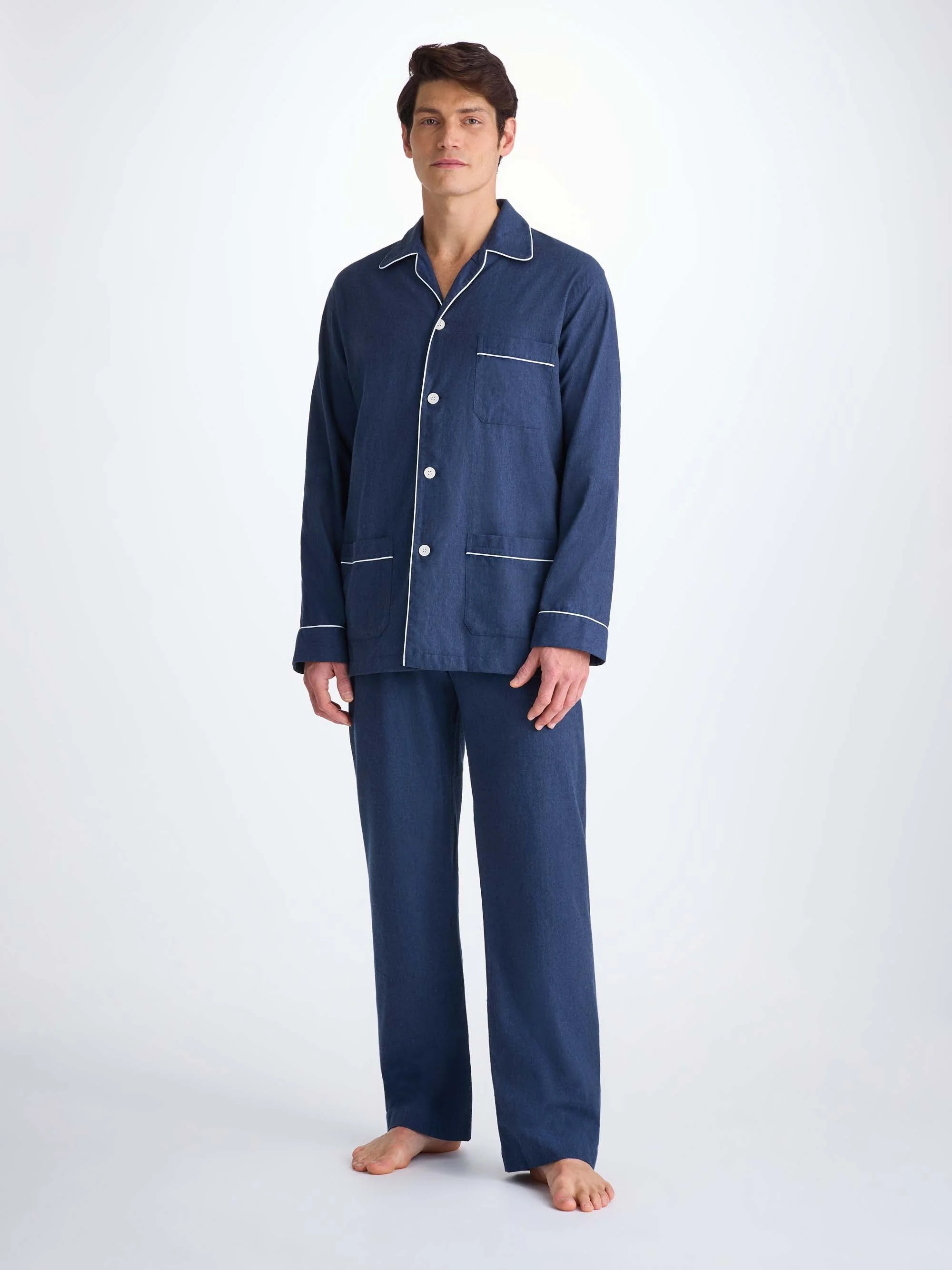 Men's Classic Fit Pajamas Balmoral 3 Brushed Cotton Navy