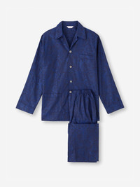With their unbelievably soft and smooth finishes, our cotton jacquard fabrics are often mistaken for silk. Thanks to their cooling touch, these are perfect for a night under the covers, no matter the temperature. Designed with a navy jungle paisley print featuring ornamental paisleys with stylised jungle flowers, plant life and hidden Derek Rose references. Find the Derek Rose cat, a Rose Star and even our signature stripes. Made to a design first developed by Mr Derek Rose, the classic fit pyjama has been refined over decades for optimum comfort. Featuring a three pocket jacket, classic collar and adjustable two-button traditional fly, this classic fit PJ has a relaxed fit and elasticated sides on the trousers, meaning the front and back are flat for your comfort. To make it truly special, we can personalise your garment. We offer a range of options including monogramming, motifs, and secret messages. Read more about our personalised services here . The model is 6'1" / 185cm tall. He wears a size Medium. PRODUCT DETAILS Composition: 100% Cotton Fabric Weight: Medium Pattern: Jacquard Sleeve Length: Long Sleeve Country of Origin: Czech Republic Item Number: 5000-PARI029NAV