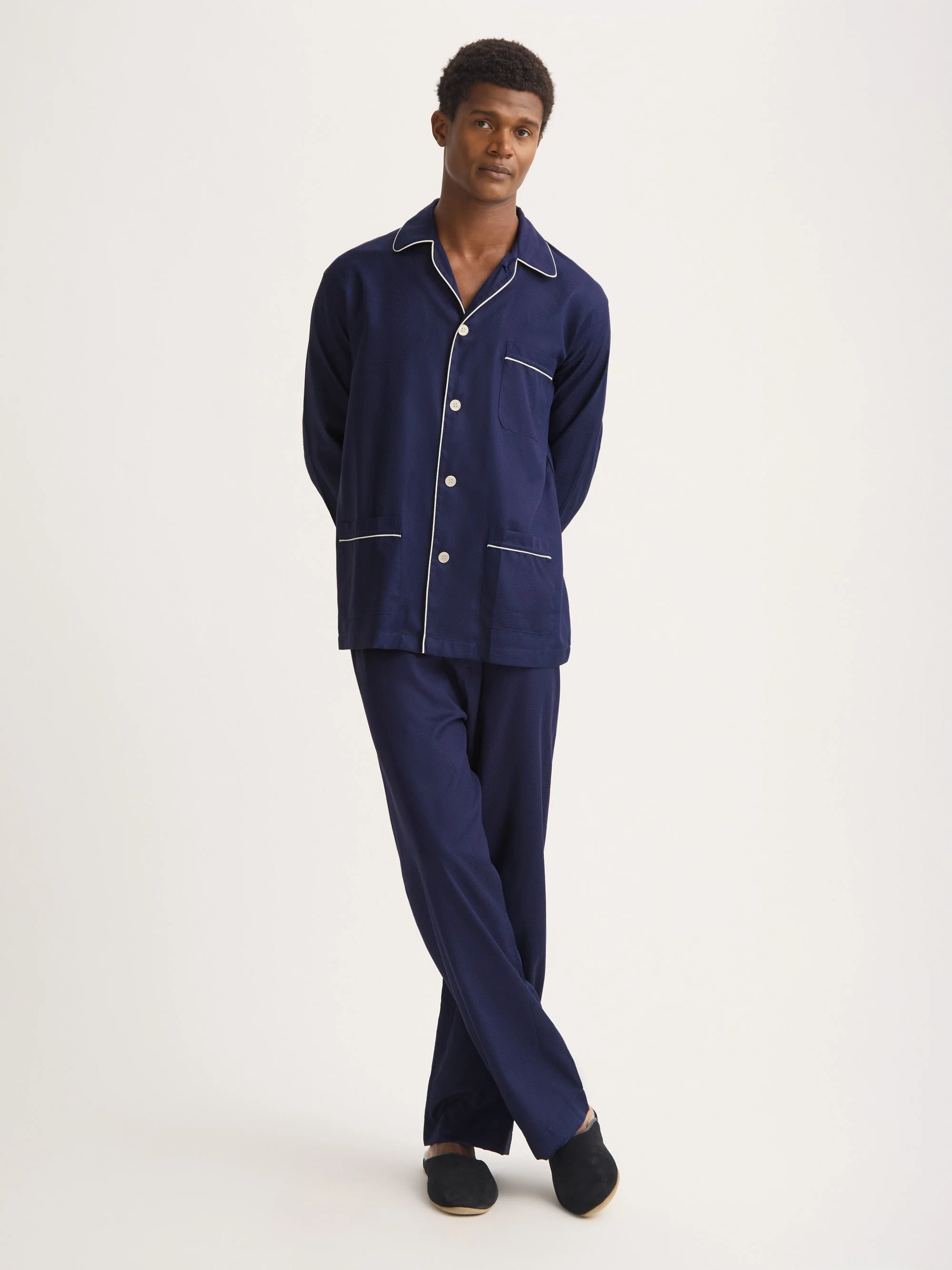 Men's Classic Fit Pyjamas Balmoral 3 Brushed Cotton Navy