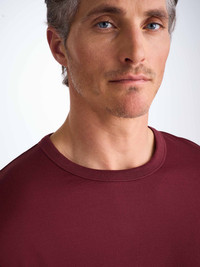 Designed in a fabric exclusive to Derek Rose, Barny is our brand new transitional travel long sleeve t-shirt. Knitted in the EU, our mid weight Pima cotton t-shirt is not only breathable, but hypoallergenic. An excellent choice for any occasion. Created in a regular fit, the crew neckline features a bound neckline with detailed ribbing. We have chosen to print our label inside of the neckline for optimal comfort. With twin needle cuffs and hem, our Barny t-shirt, seen here in burgundy, is made for every adventure due to its durable finish. Pair with your trousers or shorts of choice for a travel capsule wardrobe essential. To make it truly special, we can personalise your garment with initials or a motif. Read more about our personalised service here . The model is 6’2’’ / 188.5cm tall. He wears a size Medium. PRODUCT DETAILS Material: Pure Cotton Fabric Weight: Medium Fabric Type: Jersey Gender: Men's Colour: Burgundy Pattern: Plain Sleeve Length: Long Sleeve Season: 26-S Neck Shape: Crew Neck Country of Origin: Portugal Composition: 100% Cotton Fit: Regular Fit Item Number: 3184-BARN002BUR