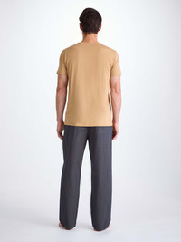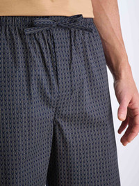 Add a layer of gentle warmth in the cold or stay cool in warmer conditions with our supremely soft jungle leaf lounge trousers. For a stylish addition to your loungewear, this style features a simple geometric print that has been digitally drawn by our London design team. Made from lightweight and super soft cotton batiste, a signature fabric of ours that excels in warmer climes, these stylish lounge trousers are designed to keep you comfortable in your most relaxed moments. Designed and cut for a regular fit, our lounge trousers feature a combined elastic and self-fabric tied waist for a comfortable fit and two inset side pockets and a rear patch pocket to help keep your phone and other items close while you're lounging. A concealed magnetic fly also ensures practicality is not lost. The model is 6’0”/ 183cm tall. He wears a size Medium. PRODUCT DETAILS Material: Pure Cotton Fabric Weight: Light Fabric Type: Regular Gender: Men's Colour: Navy Pattern: Print Season: 25-W Country of Origin: Czech Republic Composition: 100% Cotton Fit: Regular Fit Item Number: 3564-NELS106NAV