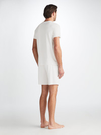We believe by focusing on the small details we can help you feel noticeably more comfortable when switching off and relaxing at home. Our Basel jersey shorts in white are a testament to this and offer a combined elastic and tie waistband for the perfect fit. They also feature two front side pockets and a rear back pocket to keep your phone and essentials close while you're lounging. Both comfortable and flattering, we've elevated this loungewear short into a luxury essential for the modern man. Our Basel fabric has to be touched to be believed. It offers long-lasting softness and doesn't pill, making it able to withstand countless days of lounging and even a duvet day (or two). The micro modal fabric constantly reacts to your body and helps you stay cool or warm according to your temperature. Clever. Furthermore, this special fabric is also environmentally friendly; made from sustainably forested European beech trees. The durability and quality of it also means you’ll be wearing your lounge shorts for years to come! The model is 6’1” / 188cm tall with waist size 31” / 80cm, chest size 39” / 101cm. He wears a size Medium. PRODUCT DETAILS Material: Micro Modal Stretch Fabric Weight: Medium Fabric Type: Jersey Gender: Men's Colour: White Pattern: Plain Season: CUST Country of Origin: Czech Republic Composition: 95% Modal 5% Elastane Fit: Regular Fit Item Number: 3559-BASE001WHI