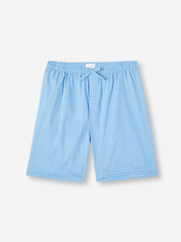 Designed for a relaxed and comfortable fit, our men's blue lounge shorts add a touch of luxury to your time at home. Wear morning, noon and night for laid-back style. Made from lightweight and super soft cotton batiste with a simple jungle leaf geometric print, a signature fabric of ours that excels in warmer weather, these lounge shorts are designed to keep you comfortable during the transition from the cold months into warmer days. Our lounge shorts feature a combined elastic and self-fabric tied waist for a comfortable fit and two inset side pockets and a rear patch pocket to help keep your phone and other items close while you're lounging. A concealed magnetic fly also ensures practicality is not lost. The model is 6'1" / 185cm tall. He wears a size Medium. PRODUCT DETAILS Material: Pure Cotton Fabric Weight: Light Fabric Type: Regular Gender: Men's Colour: Light Blue Pattern: Print Season: 25-W Country of Origin: Czech Republic Composition: 100% Cotton Fit: Regular Fit Item Number: 3560-NELS106BLU