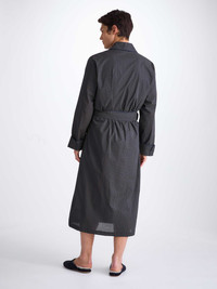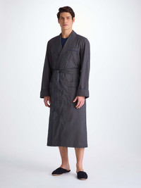 Made from our signature cotton batiste, a light and soft fabric that excels in warmer conditions, the jungle leaf dressing gown features a classic shawl collar design with a breast pocket and two front pockets for practicality while around the house. The gown is also complemented with navy piping, a digitally drawn leaf print and a self-fabric tie-waist for an added touch of luxe. For the man who likes to lounge in style, our signature dressing gowns merge classic styling with modern fabric designs. With its regular fit, you can layer this gown comfortably over pyjamas or loungewear. To make it truly special, we can personalise your garment with initials or a motif. Read more about our personalised services here . The model is 6’0”/ 183cm tall. He wears a size Medium. PRODUCT DETAILS Material: Pure Cotton Fabric Weight: Light Fabric Type: Regular Gender: Men's Colour: Navy Pattern: Print Sleeve Length: Long Sleeve Season: 25-W Country of Origin: Czech Republic Composition: 100% Cotton Fit: Regular Fit Item Number: 5505-NELS106NAV