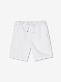Our Sydney shorts in white are cut for a regular fit for the perfect, warm weather ready style. We have developed a mid-weight, beautifully soft and breathable pure linen that will keep you cool and comfortable in even the hottest of conditions. This made in Italy fabric is finished by being piece-dyed before construction for a bright and vibrant pure white. The Sydney short features a curved back yoke for a great fit and an elasticated waistband with drawcord for comfort. The front of the short features two angled side pockets whilst the back features a single zipped pocket that sits under the curve of the back yoke. This pocket is closed with our unique pin-lock zip which locks into place when flat to ensure a secure closure. A zipped fly opening and our minimalist rose logo label on the front left pocket finish the look. Wear the Sydney from the villa to the beach or as a cool, smart-casual short for sultry evening walks and dinner by the sea. The model is 6’1” / 188cm tall with waist size 31” / 80cm, chest size 39” / 101cm. He wears a size Medium. PRODUCT DETAILS Material: Pure Linen Fabric Weight: Medium Fabric Type: Regular Gender: Men's Colour: White Pattern: Plain Season: CLA Country of Origin: Czech Republic Composition: 100% Linen Fit: Regular Fit Item Number: 9810-SYDN001WHI