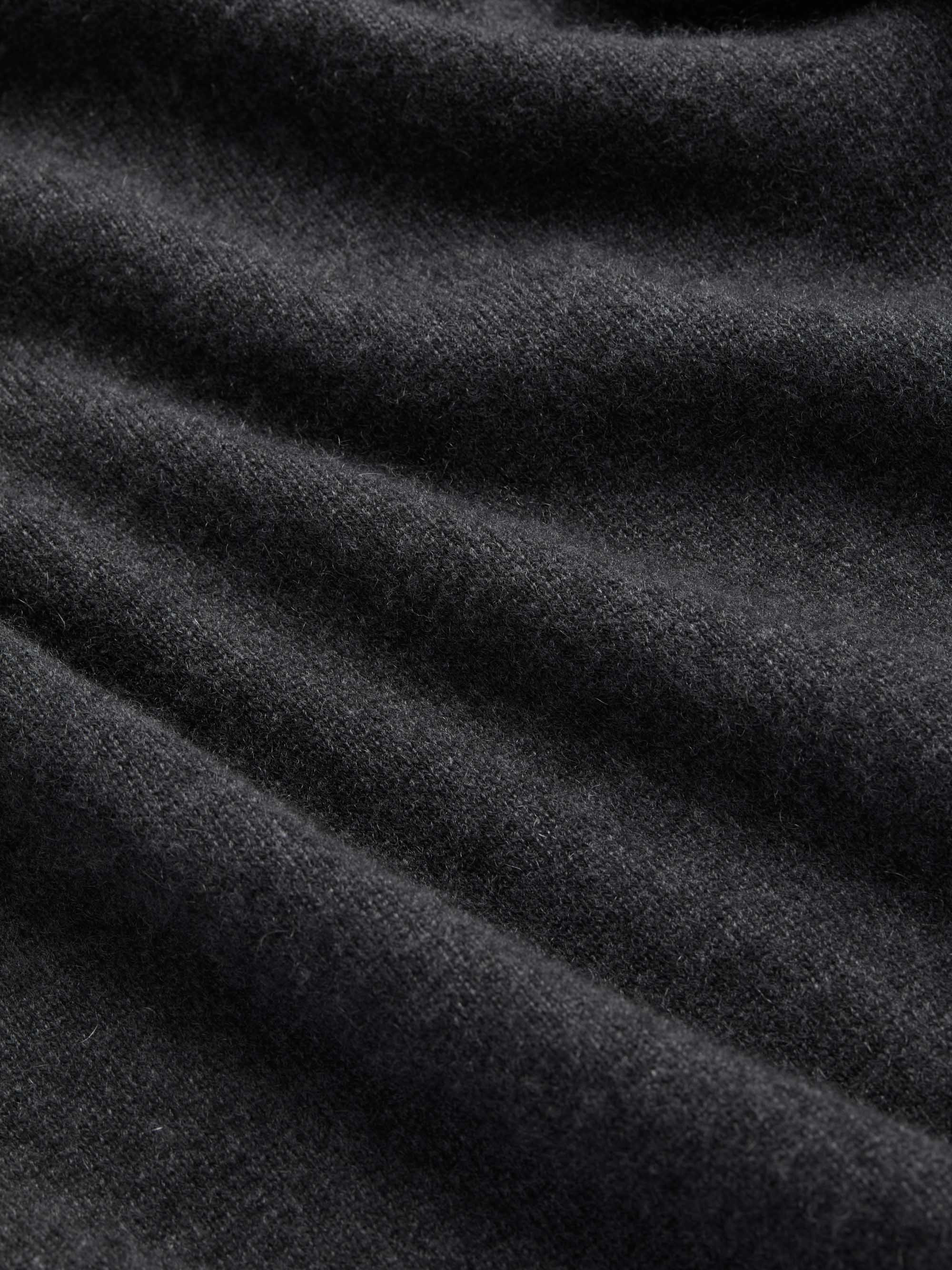 This 100% cashmere charcoal sweater has been designed with ribbed cuffs, hem and collar, as well as raglan sleeves for the perfect fit. Contrast internal ribbing and an integrated 'V' detail have been added for a refined finish. The starting point for the Finley was the cashmere - we selected a luxuriantly soft 12 gauge pure Italian cashmere from Cariaggi which we consider to be best in class. Touch this fabric and you'll be reminded what cashmere should feel like. The material hangs wonderfully, for a look that's as luxurious as the feel. Our philosophy is to use the finest materials and components, paying attention to every detail of construction so that the resulting garment is both comfortable and stylish. Keep your cashmere looking its best with our Beechwood Cashmere Comb. The model is 6’1” / 188cm tall with waist size 31” / 80cm, chest size 39” / 101cm. He wears a size Medium. PRODUCT DETAILS Material: Pure Cashmere Fabric Weight: Medium Fabric Type: Jersey Gender: Men's Colour: Charcoal Pattern: Plain Sleeve Length: Long Sleeve Season: 24-W Neck Shape: Crew Neck Country of Origin: Mauritius Composition: 100% Cashmere Fit: Regular Fit Item Number: 3159-FINL010CHA